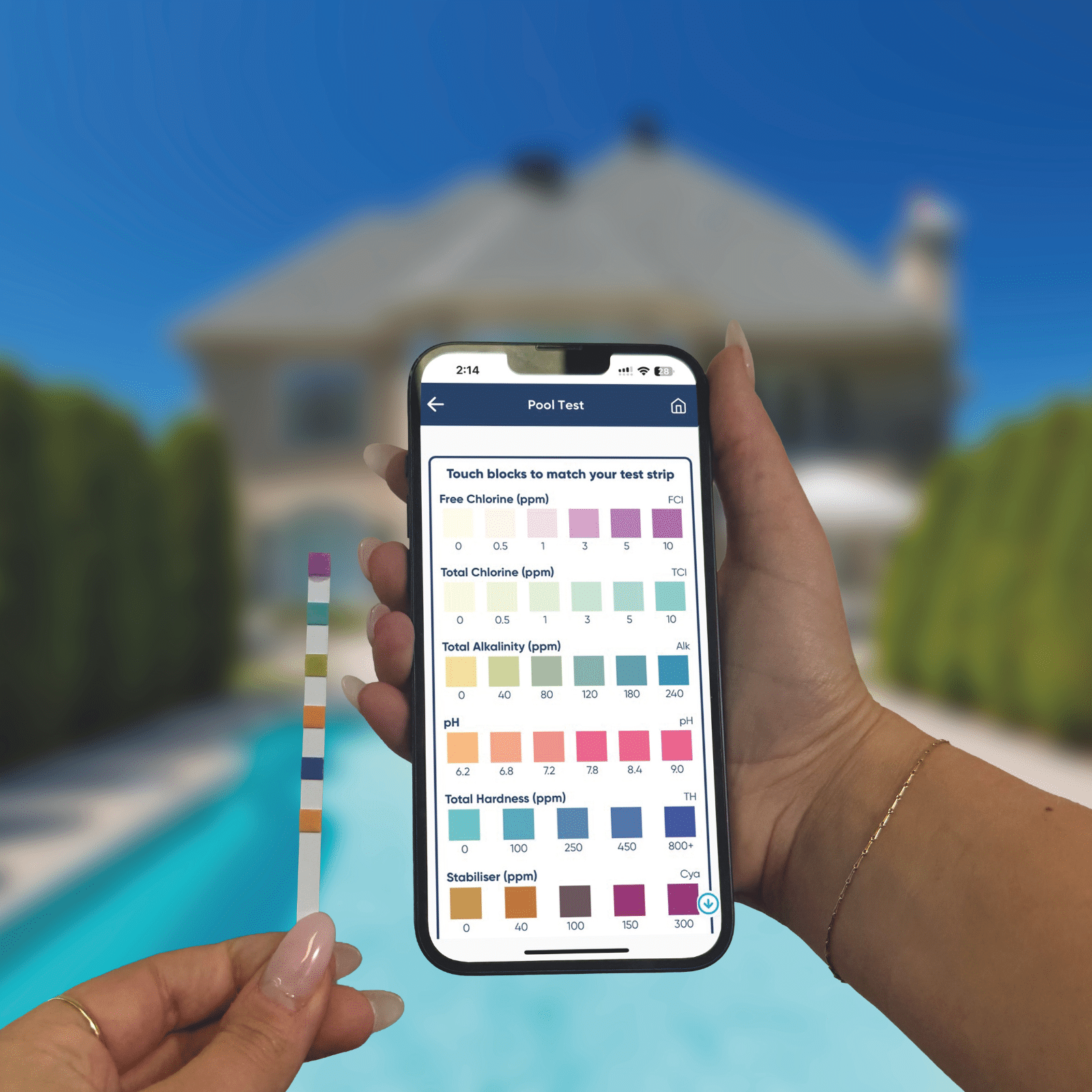 Next, compare the colours on the strip to those on the HY-CLOR app. If you are unsure how to read pool water test results, you can find instructions on the app.