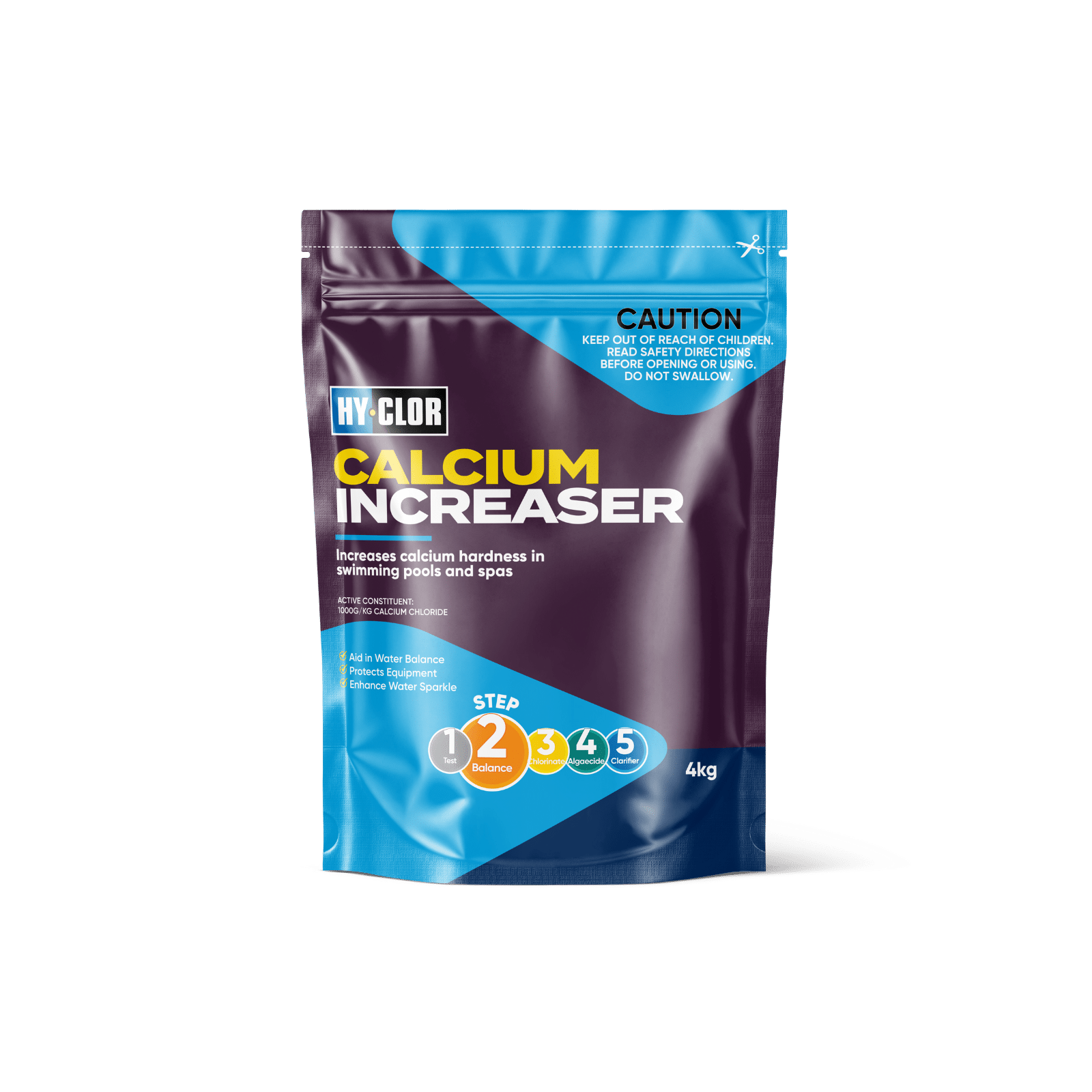 Add the recommended amount of calcium chloride to your pool water while the pump runs. When tested, the calcium hardness level should be between 200-400 ppm for pools and between 150-250 ppm for spas.