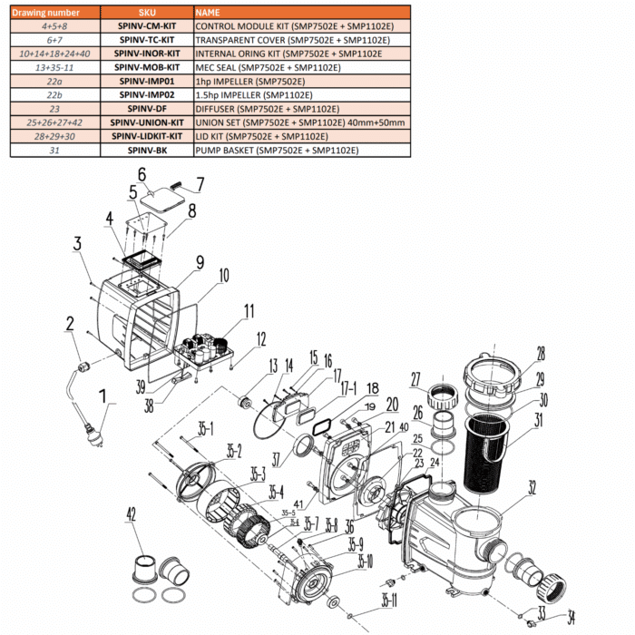 | 42 | SPINV-UNION-KIT | Hy-Clor Inverter Pump Union Set (40+50mm) |
