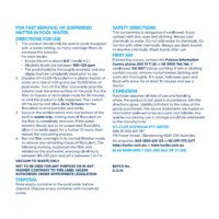- Not to be used in a pool without a waste option (many cartridge filters do not have a waste function – pH should be above 8)