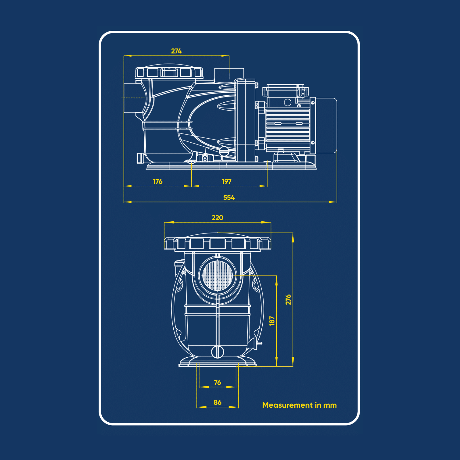 This pump comes equipped with unions that easily connect to 40mm PVC pressure pipe, streamlining the installation process. Constructed with durable, weather-resistant materials, it is engineered to withstand chemical exposure and various weather conditions, ensuring longevity and reliability.
