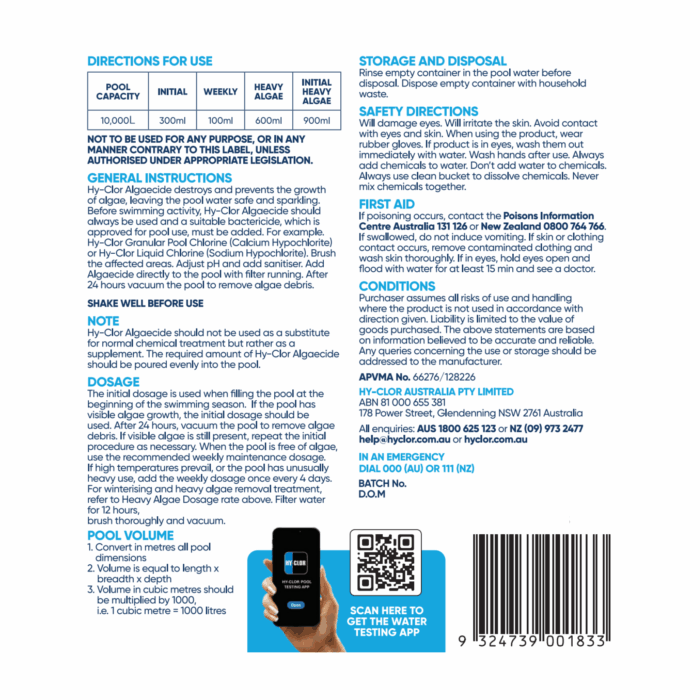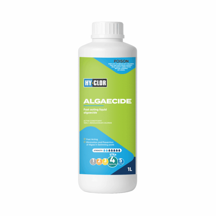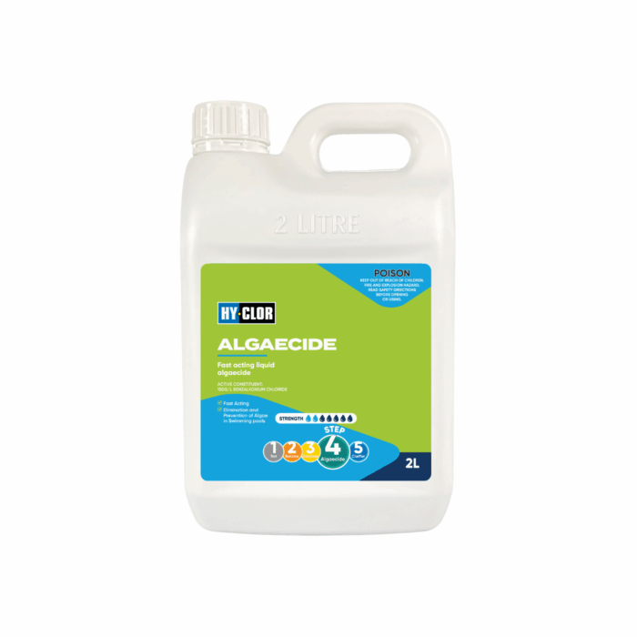 Ideally used as part of a regular preventative maintenance programme. Hy-Clor Algaecide is a mid-strength formula designed to prevent algae taking hold of your swimming pool.