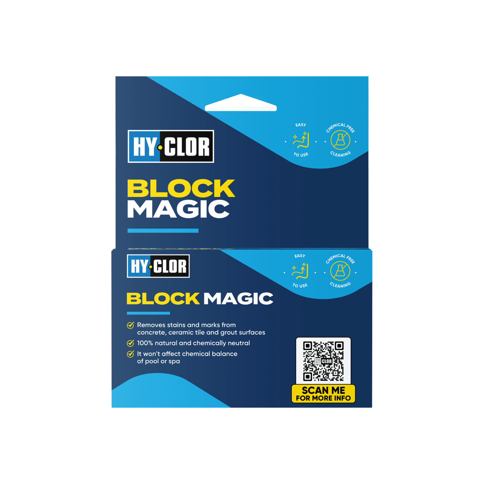 The Block Magic removes stains and marks from concrete, ceramic tile and grout surfaces. White marks caused by high calcium levels & hard water, oils deposits from suntan and other lotions, mineral, rust, mildew and other stains can be removed. 100% Natural and chemically neutral.