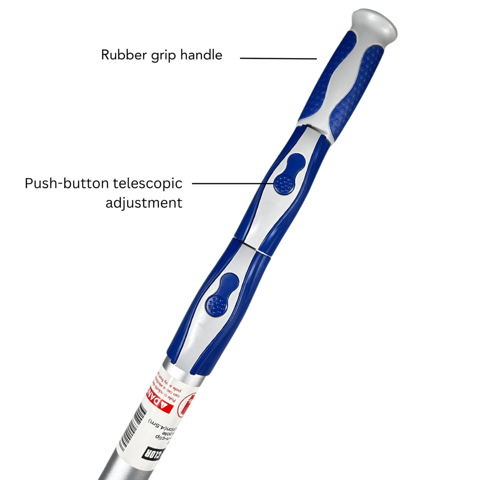 A premium quality telescopic pool pole that has push-button adjustment rather than the traditional twist and release. This makes length adjustment much quicker and easier. This telescopic pool pole has a rubber grip handle to provide more grip and greater comfort.