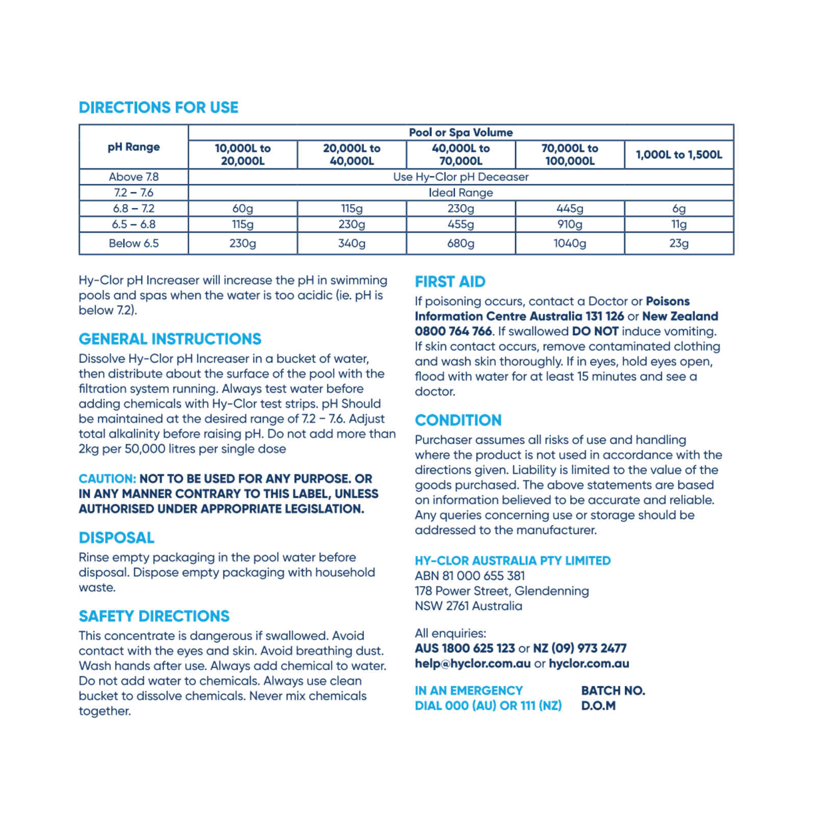 - Do not add more than 2kg per 50,000L per single dose