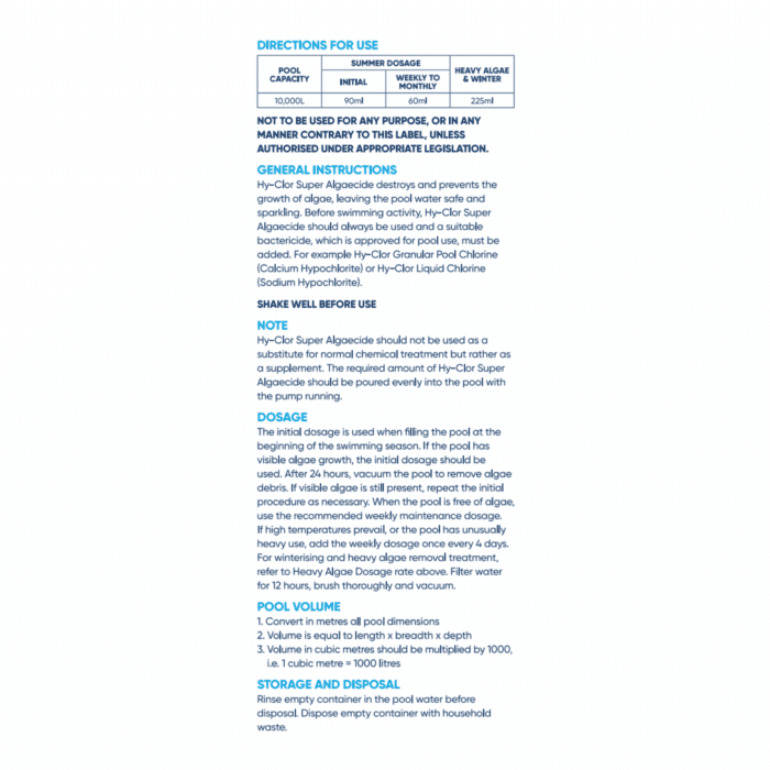 A super high strength algaecide concentrate for the effective elimination and prevention of algae in swimming pools. Highly concentrated for powerful elimination of stubborn algae in swimming pools.